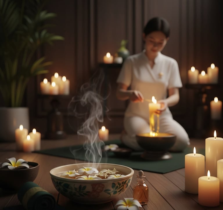 4. Velas Aromáticas & Toallas Calientes (Esencia)