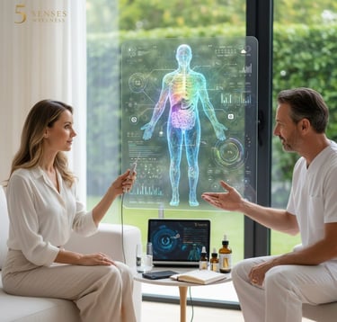 "En 5Senses, no solo tratamos síntomas; escuchamos lo que tu cuerpo y tu mente intentan comunicarte. A través de nuestra integración de tecnología Biocuántica, sabiduría ancestral y soporte emocional, te ofrecemos el camino más directo para recuperar tu vitalidad. Porque cuando tu interior está en calma, tu belleza exterior se vuelve imparable."